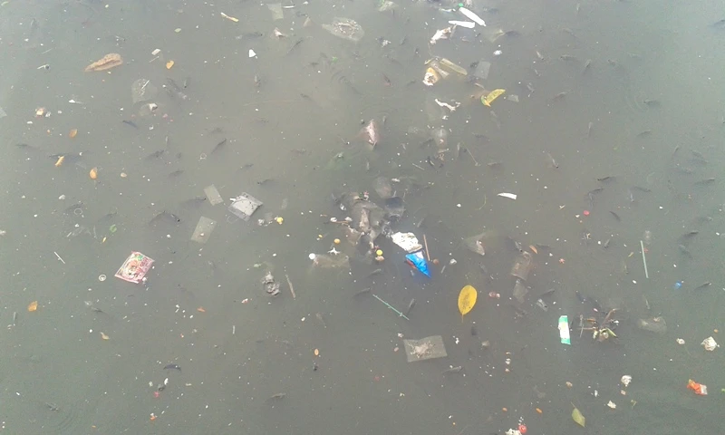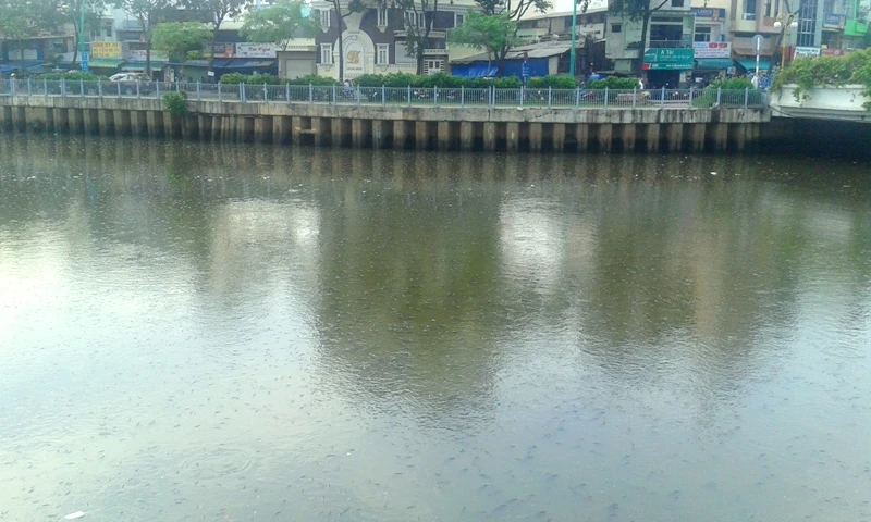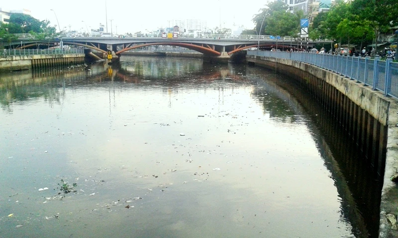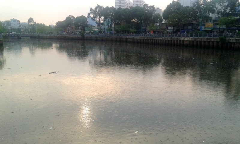 Theo quan sát của chúng tôi, vào thời điểm 16 giờ chiều 29-7, kênh Nhiêu Lộc – Thị Nghè có nhiều rác thải và mực nước xuống rất thấp. Dòng nước có màu xanh thẫm, nhiều đoạn nước có màu đen như bùn đất.