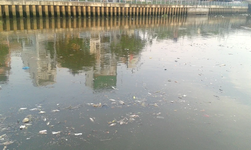 Dọc tuyến kênh cũng xuất hiện nhiều xác cá chết trôi lềnh bềnh theo những đám lục bình và rác thải.