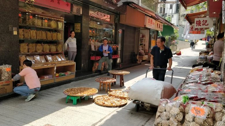 Sheung Wan là trung tâm chuyên bán thuốc Đông y và hải sản khô ở Hong Kong. Ảnh: CNN