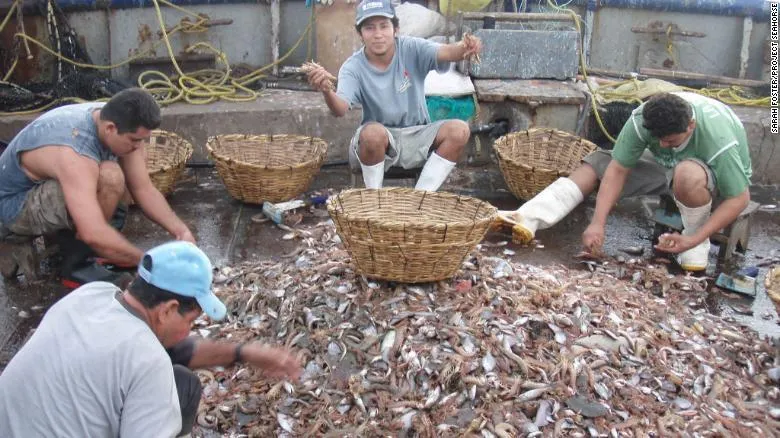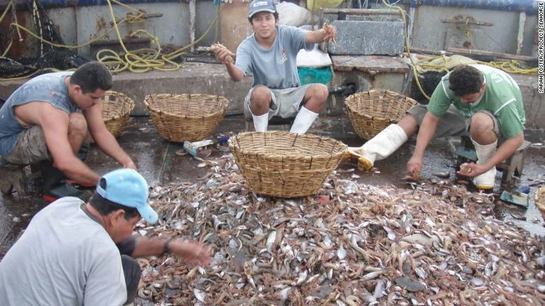 Ngư dân bắt được cá ngựa trong một mẻ tôm. Ảnh: CNN