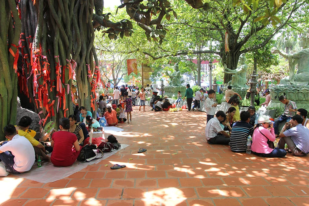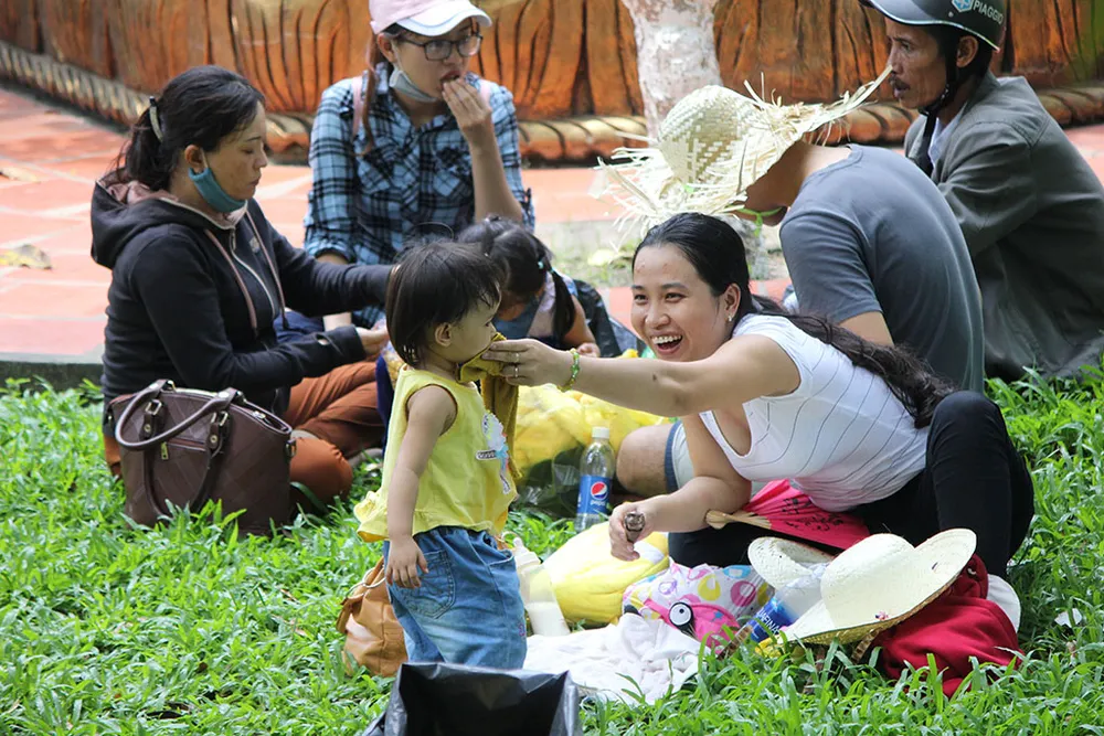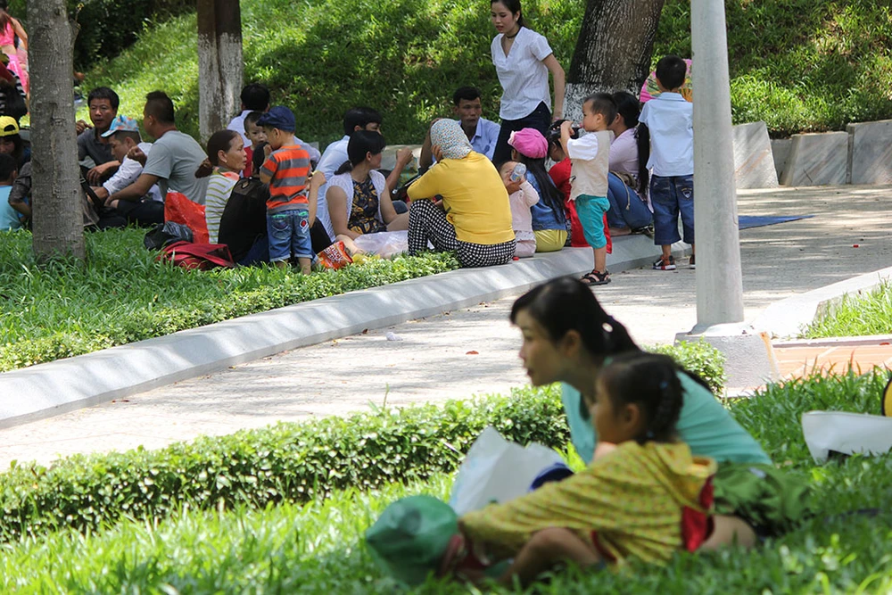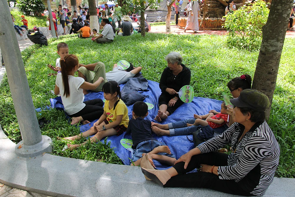 Bất kỳ nơi nào có bóng mát đều đông kín các gia đình đi chơi lễ.