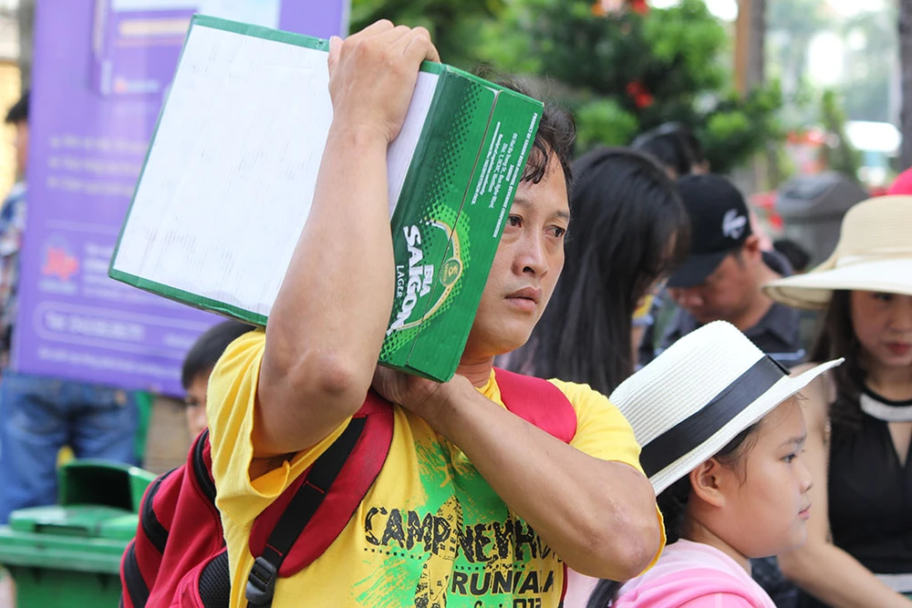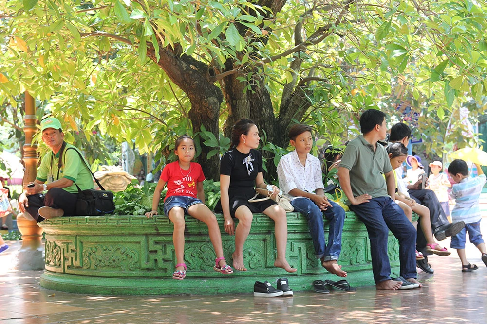 Cả nhà tránh nắng dưới gốc cây xanh.