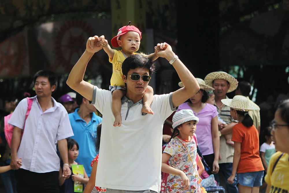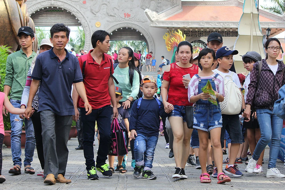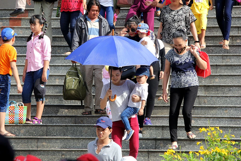 Từ sáng sớm, hàng nghìn phụ huynh dắt con cái đến đây vui chơi.