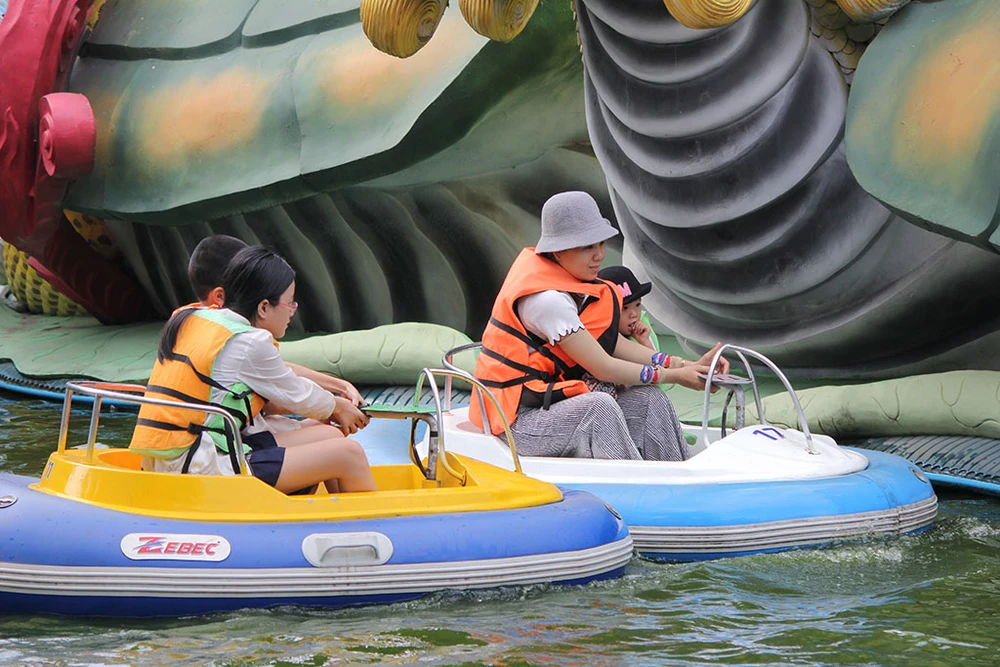 Dù giữa trưa nhưng nhiều gia đình vẫn đang bắt đầu tìm tới để vui chơi.