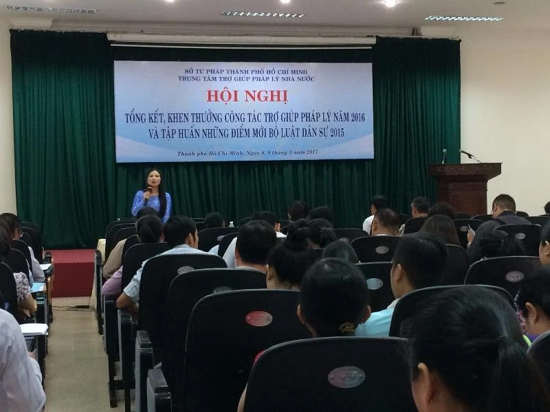 Tham gia hội nghị có đại diện của Ban Giám đốc Sở Tư pháp, lãnh đạo Phòng Tư pháp 24 quận, huyện, các tổ TGPL, Hội Luật gia, thành viên Tổ giúp việc Hội đồng phối hợp liên ngành TP.HCM, cộng tác viên TGPL và các cán bộ viên chức của trung tâm.