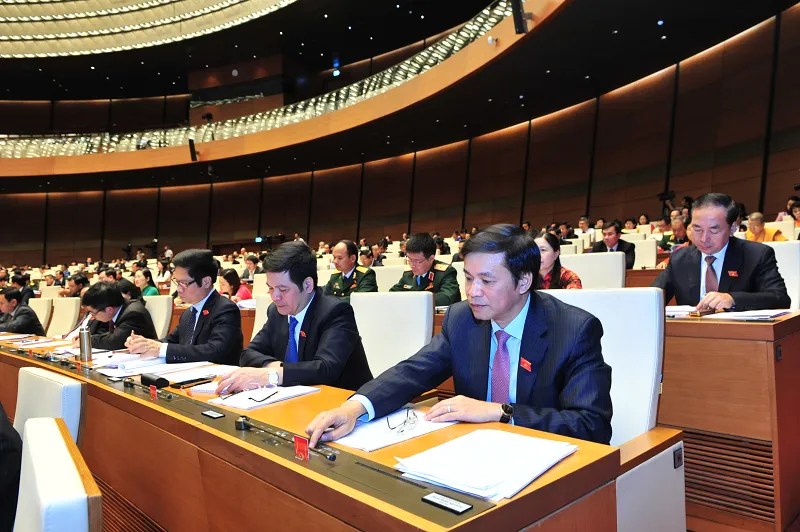 ĐBQH biểu quyết thông qua nghị quyết về xử lý nợ xấu của các TCTD. Ảnh: VGP