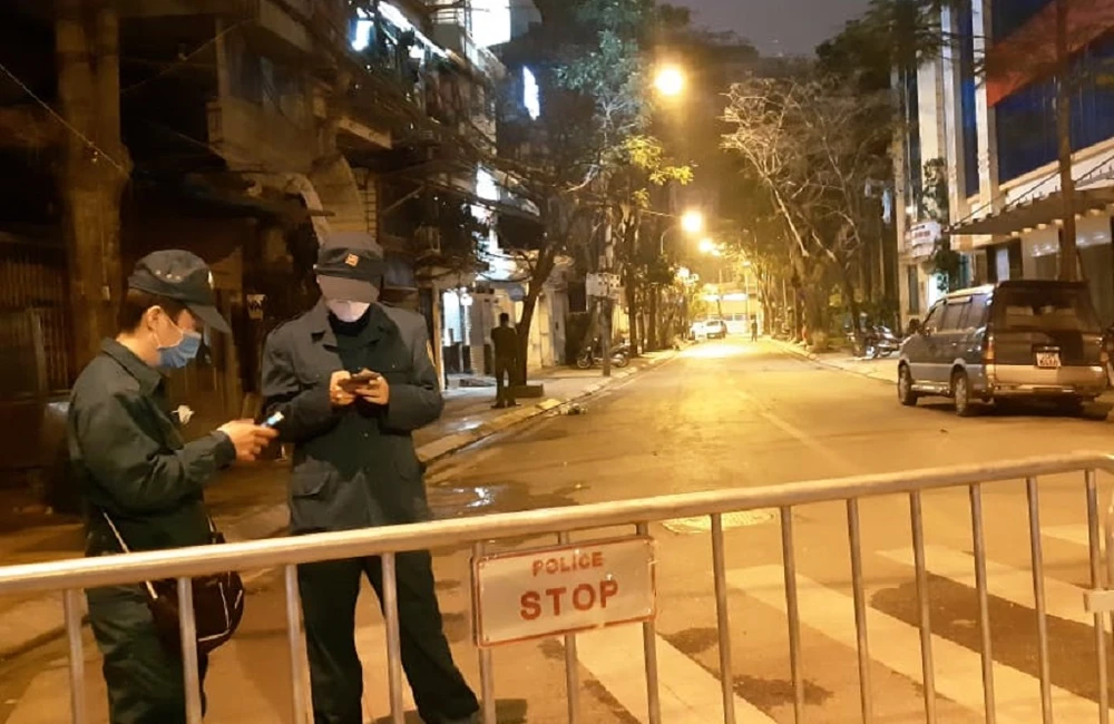 Tuyến phố Trúc Bạch bị phong tỏa một phần. Ảnh: TP