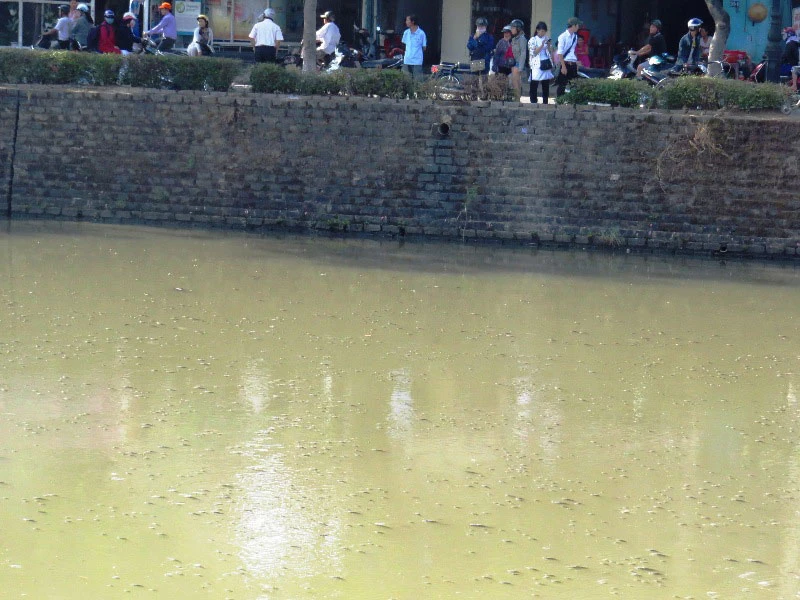 Có mặt tại trục đường Phan Đình Phùng, Phan Chu Trinh bên dòng sông An Cựu, chúng tôi thấy các loài cá cứ nối đuôi nhau nổi trên mặt nước dày đặc, đoạn từ cầu Kho Rèn nối dài về hạ nguồn.