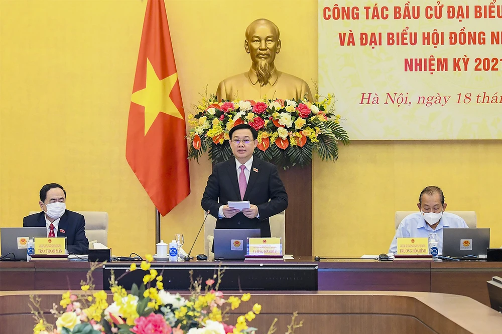 Phát biểu kết luận hội nghị, Chủ tịch QH Vương Đình Huệ khẳng định đến nay mọi công việc chuẩn bị đã hoàn tất, sẵn sàng cho ngày bầu cử 23-5. Các địa phương còn gặp khó khăn do dịch bệnh như Đà Nẵng, Bắc Giang, Bắc Ninh đều quyết tâm tổ chức bầu cử đúng thời gian và thành công.
