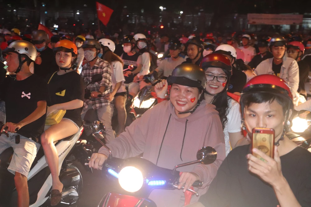 Tại Đà Nẵng không khí cũng sôi động không kém với hàng ngàn người đổ ra đường. Ảnh: HẢI HIẾU