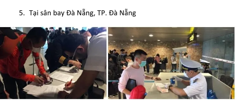 Khách đến từ Trung Quốc làm thủ tục khai báo tại sân bay Đà Nẵng.