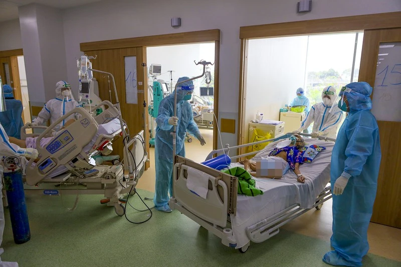 Bệnh viện hồi sức COVID-19 ở TP Thủ Đức chuyên tiếp nhận bệnh nhân nặng. Ảnh: NGUYỆT NHI