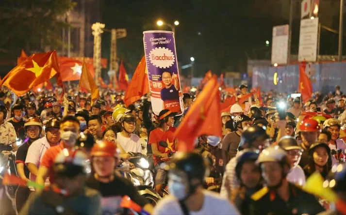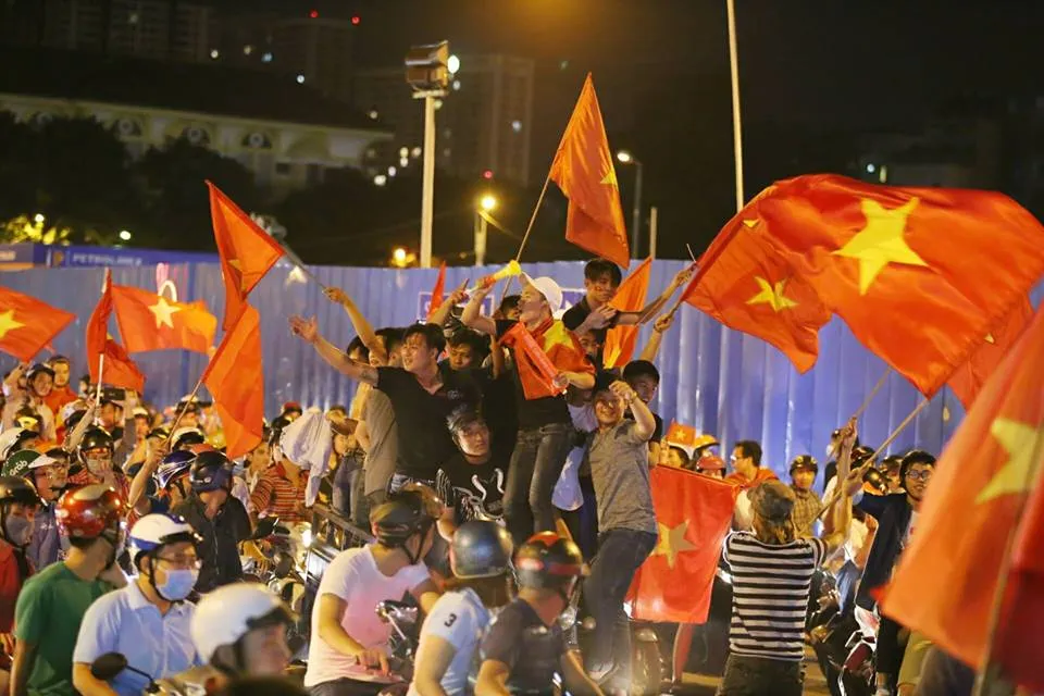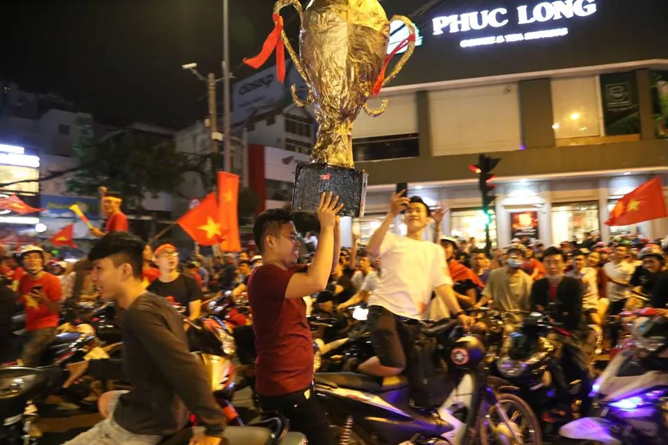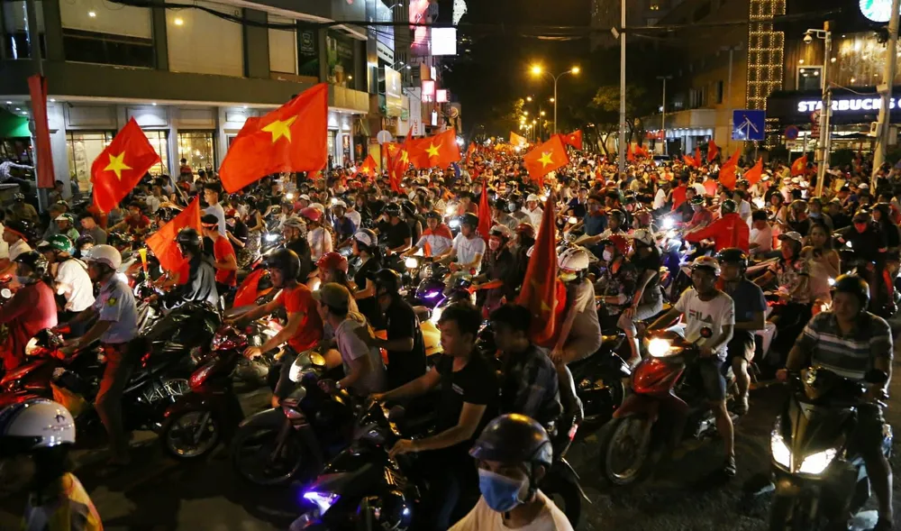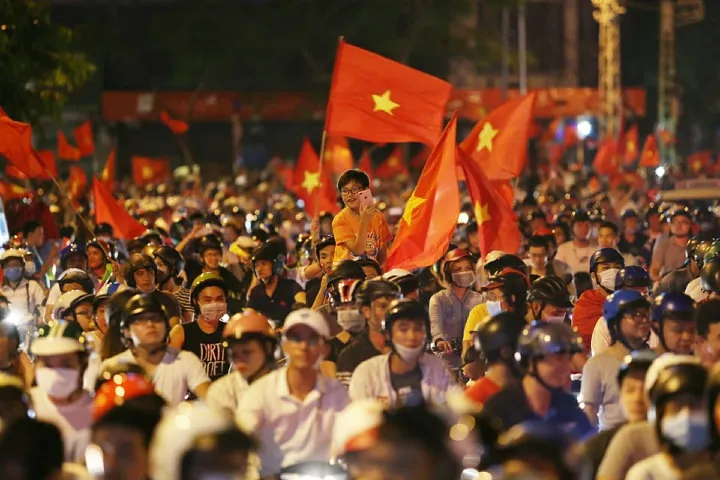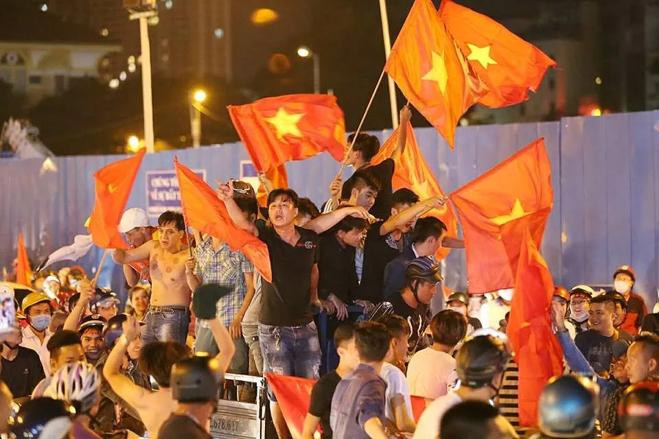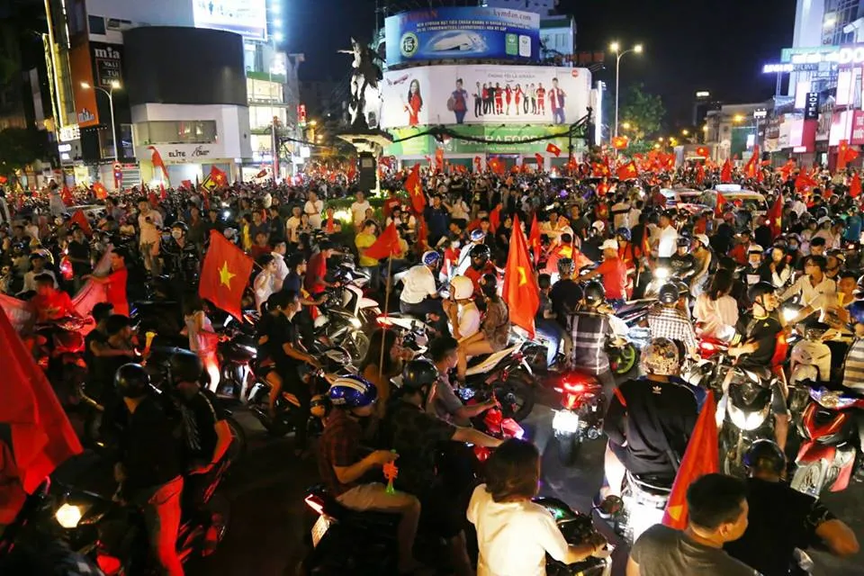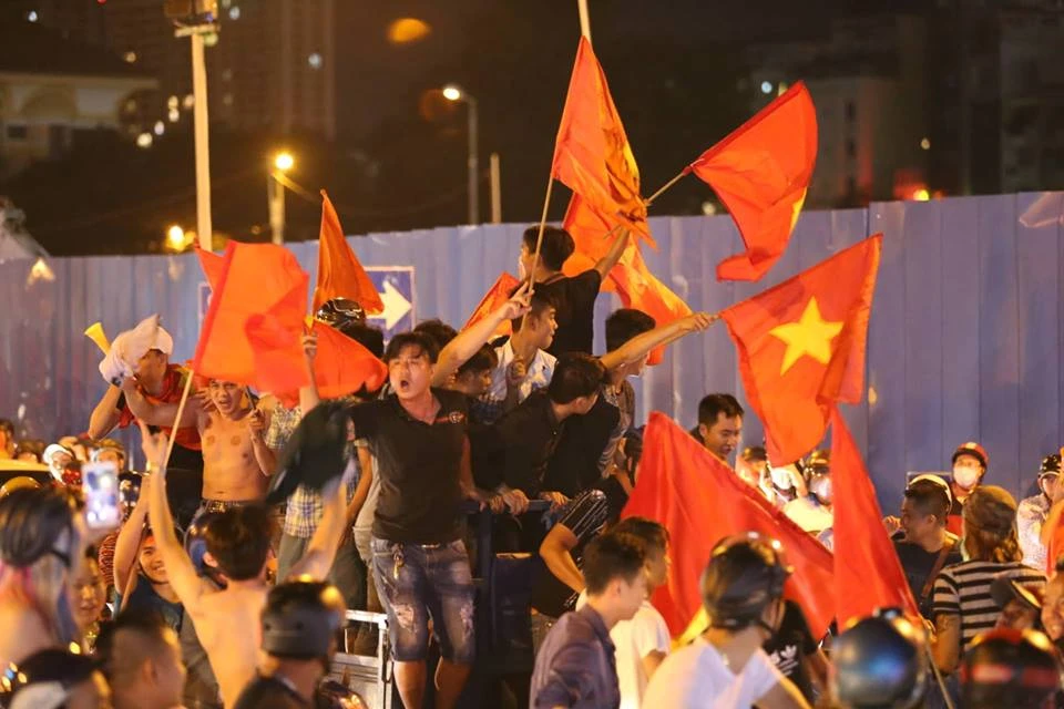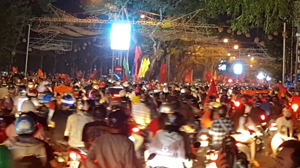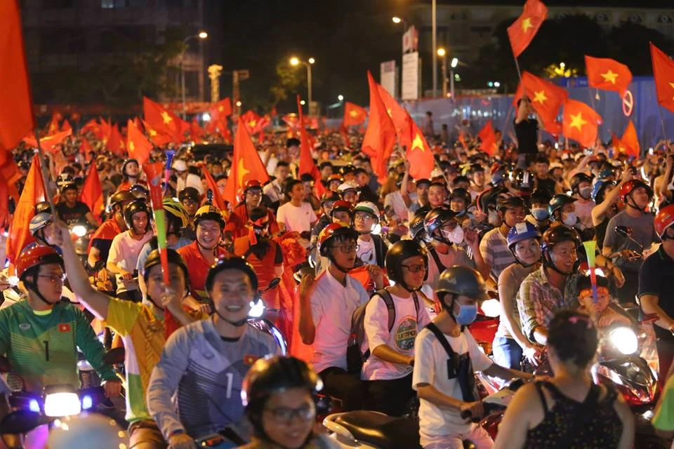 Dọc tuyến đường 30/4 và đại lộ Hòa Bình, từng dòng xe nối đuôi nhau, đường phố về khuya như bùng nổ theo chiến thắng của Việt Nam. Lá cờ đỏ sao vàng tung bay khắp nơi, tiếng kèn trống rền vang cả một vùng trời.