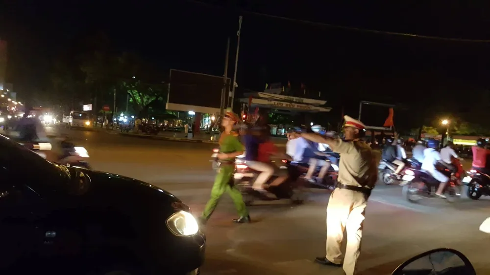 Ngay lúc này lực lượng CSGT, cơ động đã có mặt ở khắp các tuyến đường điều tiết giao thông, tránh tình trạng cổ động viên quá khích.