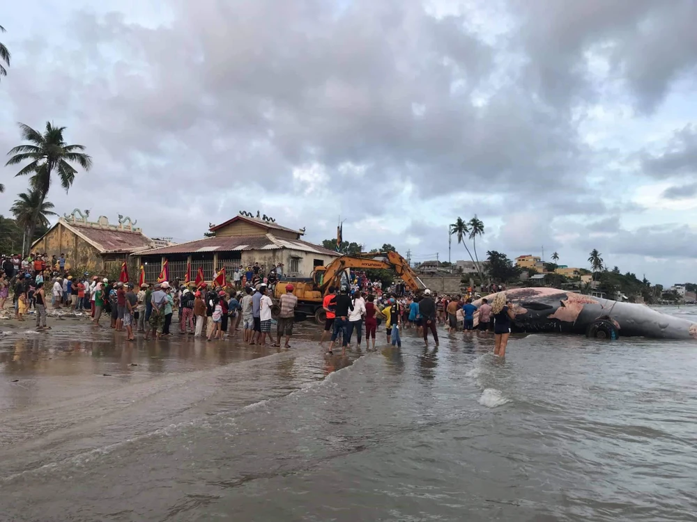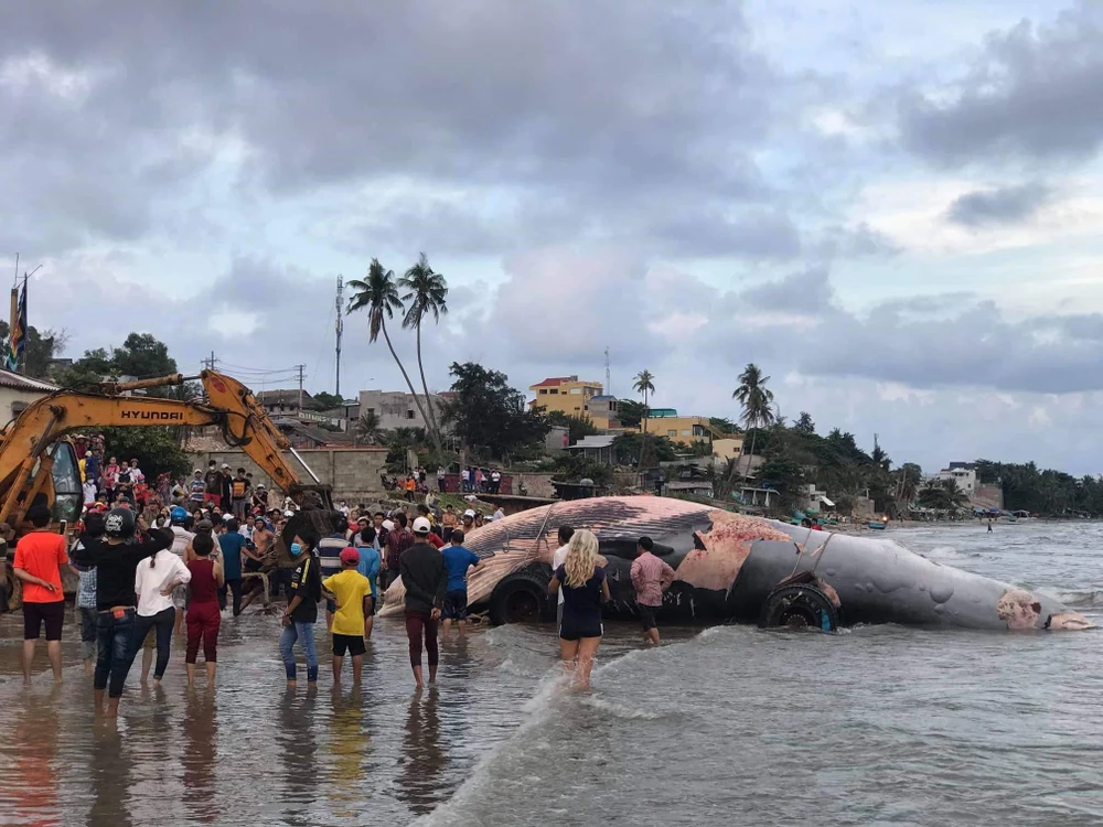 Trước đó, tàu cá của ngư dân Mũi Né khi đang đánh bắt hải sản cách bờ khoảng 50 hải lý thì phát hiện một xác cá voi khổng lồ, dài khoảng 14 mét đang nổi trên biển.