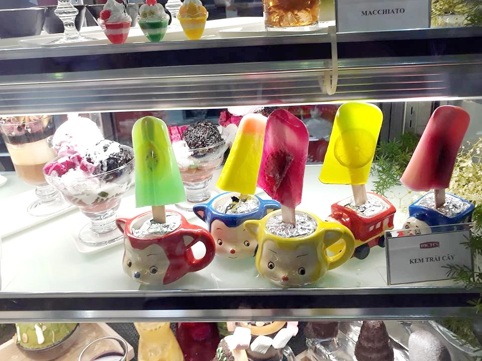 Bên cạnh đó là rất nhiều loại bánh ngọt, bánh tráng miệng trong và ngoài nước cũng hiện diện tại đây với những hình thức đẹp đẽ, hấp dẫn. Trong đó có những thương hiệu lớn của thế giới như Richs, Monin, Davinci, Pamona, PreGel, Shoot, Golden Farm…