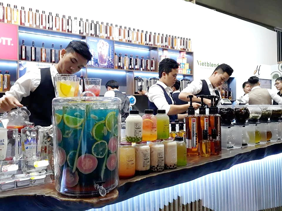 Có rất nhiều loại cà phê, trà sữa, nước trái cây, kem, bánh ngọt trong và ngoài nước với những thợ làm bánh, thợ pha chế nước ngoài đứng làm và phục vụ miễn phí người tham quan triển lãm. Bên cạnh đó, cũng có một số loại thức uống thương hiệu được bán khuyến mãi tại đây, trong đó, du khách rất ấn tượng với cà phê Obama 19k có hình cựu Tổng thống Obama đứng tiếp thị và Cà phê Mr Việt với hình nộm thu hút.