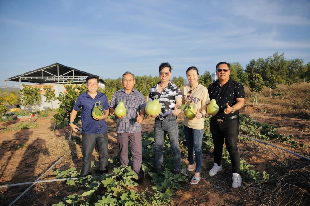 Tại đây, Ngọc Sơn trải nghiệm hoạt động thu hoạch nông sản ở khu vườn trên ngọn đồi rộng hơn 50 héc ta gồm đủ loại cây trái như: mít, dưa hấu, xoài, mận, nhãn…
