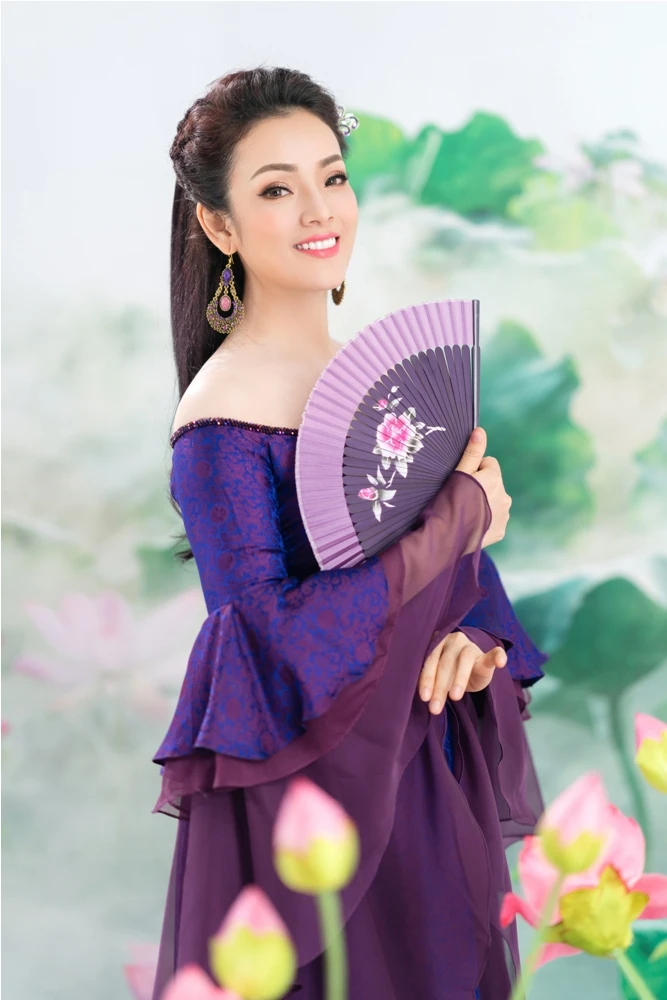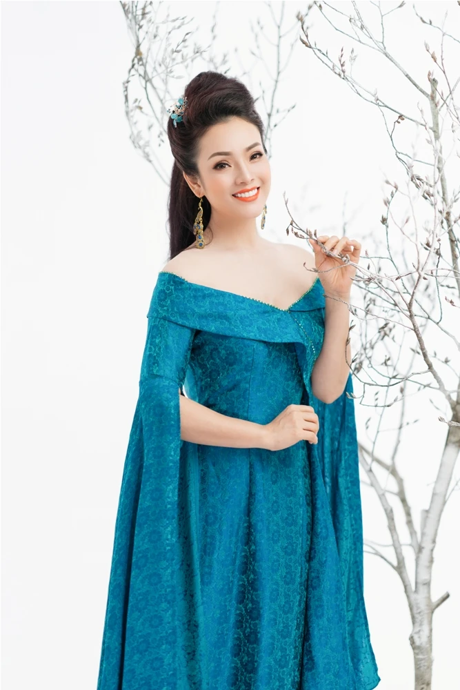 Tân Nhàn cũng sử dụng 4 trang phục áo dài với 4 tone màu rực rỡ đại diện cho 4 mùa.