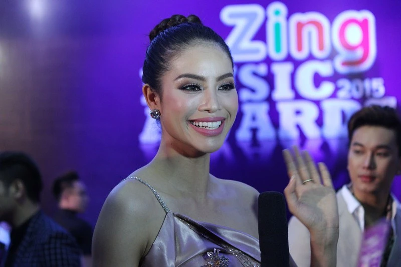 Hoa hậu Hoàn vũ VN 2015 Phạm Hương rạng ngời trong đêm trao giải Zing Music Award. Ảnh: HOÀNG GIANG