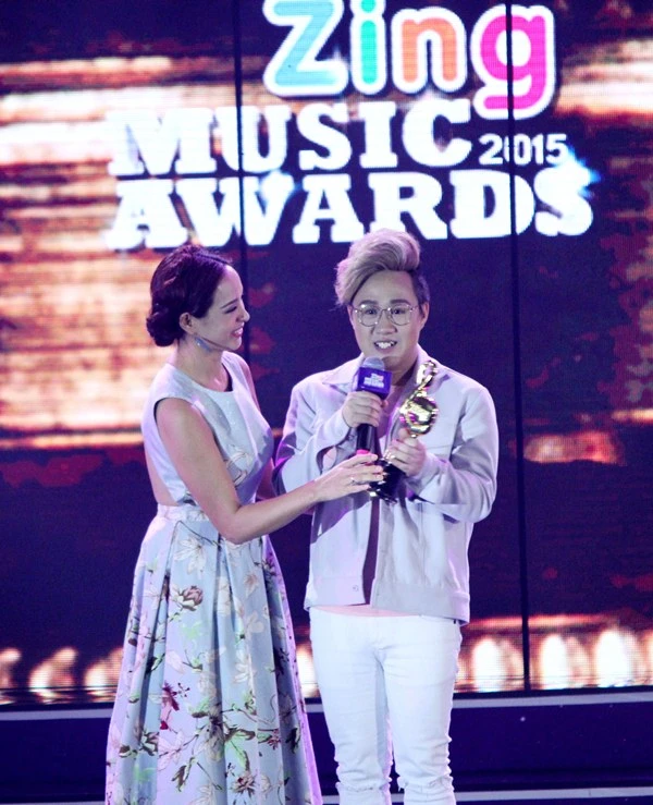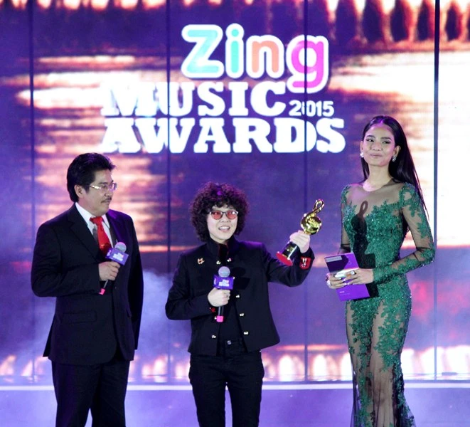 Tiên Tiên nhận cơn mưa giải thưởng tại Zing Music Awards 2015 tối 11-1. Ảnh: HOÀNG GIANG