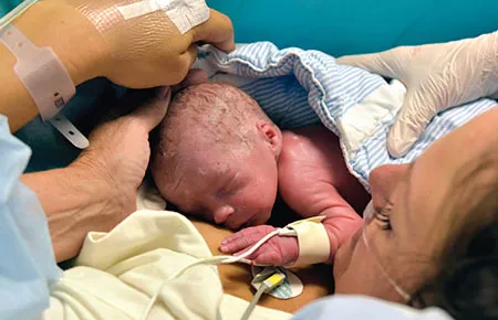 Một năm sau, các bác sĩ đặt phôi (đã thụ tinh trong ống nghiệm bằng trứng của bà mẹ và chồng) vào tử cung ghép. Cơ thể của bà mẹ ba lần có phản ứng thải tử cung ghép nhưng đều được điều trị thành công bằng thuốc.