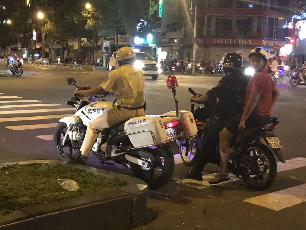 Hơn 0 giờ 30, lực lượng CSGT, CS trật tự, hình sự,… đã tập trung về hai chốt Trần Hưng Đạo - Nguyễn Thái Học và Trần Hưng Đạo - Nguyễn Văn Cừ để bủa vây nhiều thanh niên quá khích chạy xe vi phạm giao thông.