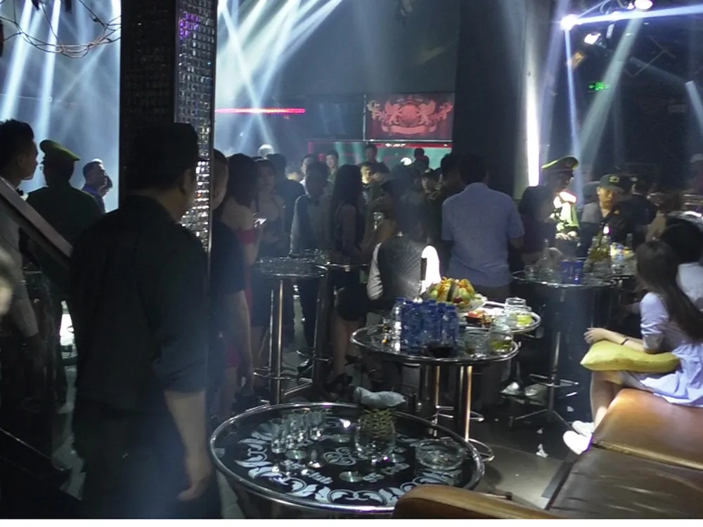 Tại khu vực VIP, phát hiện cảnh sát, nhiều nam nữ thanh niên đang phê pha nháo nhào bỏ chạy. Họ để lại trên các bàn những viên nén, túi nhỏ chứa các tinh thể màu trắng nghi là ma túy rải rác ở gầm bàn ghế. 26 nghi vấn sử dụng ma túy bị cảnh sát đưa về trụ sở để làm rõ.