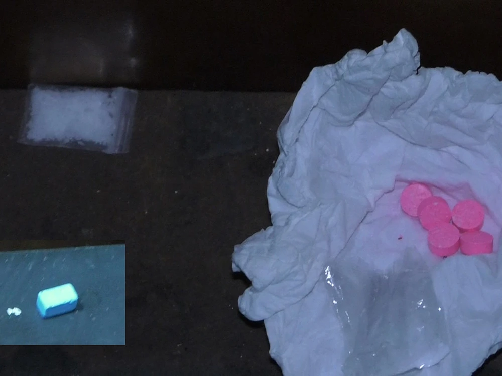 Nhiều viên nén, tinh thể màu trắng trong các túi được cảnh sát phát hiện, thu giữ. Ảnh: CA