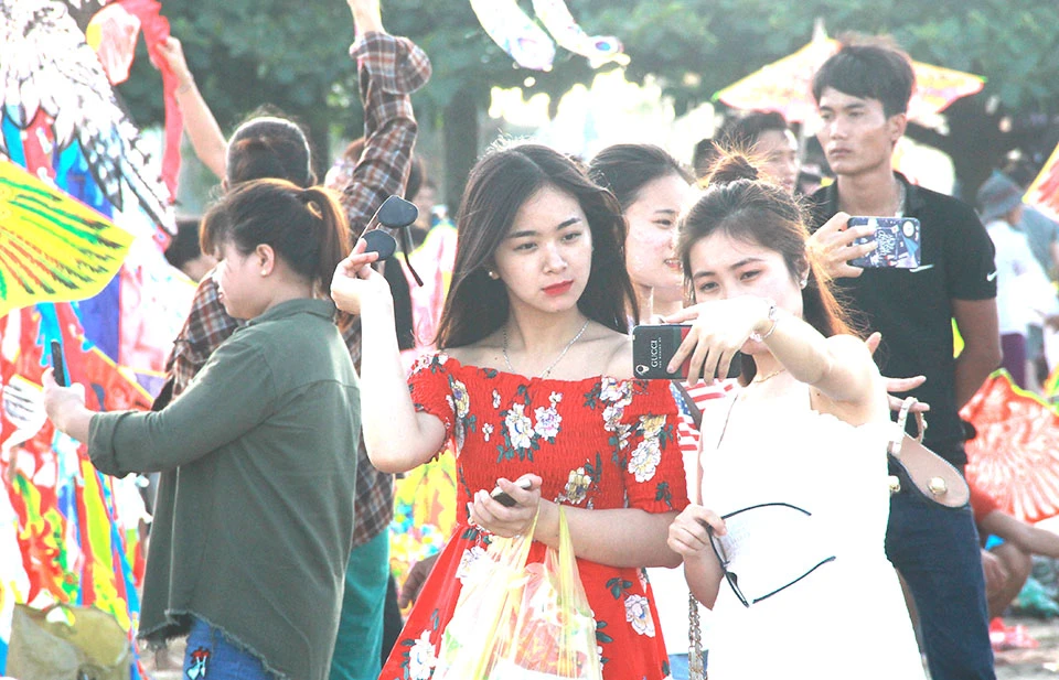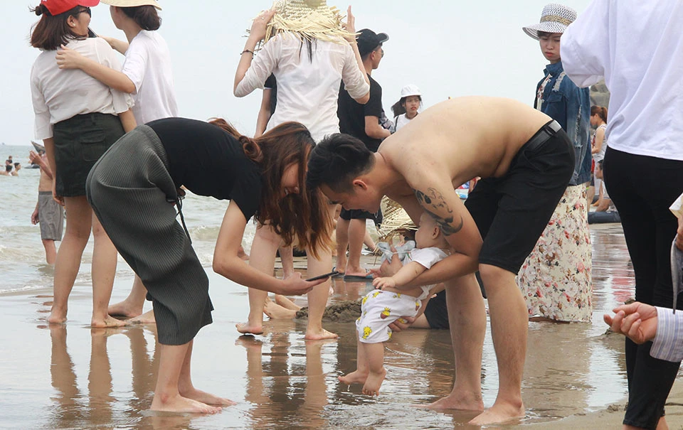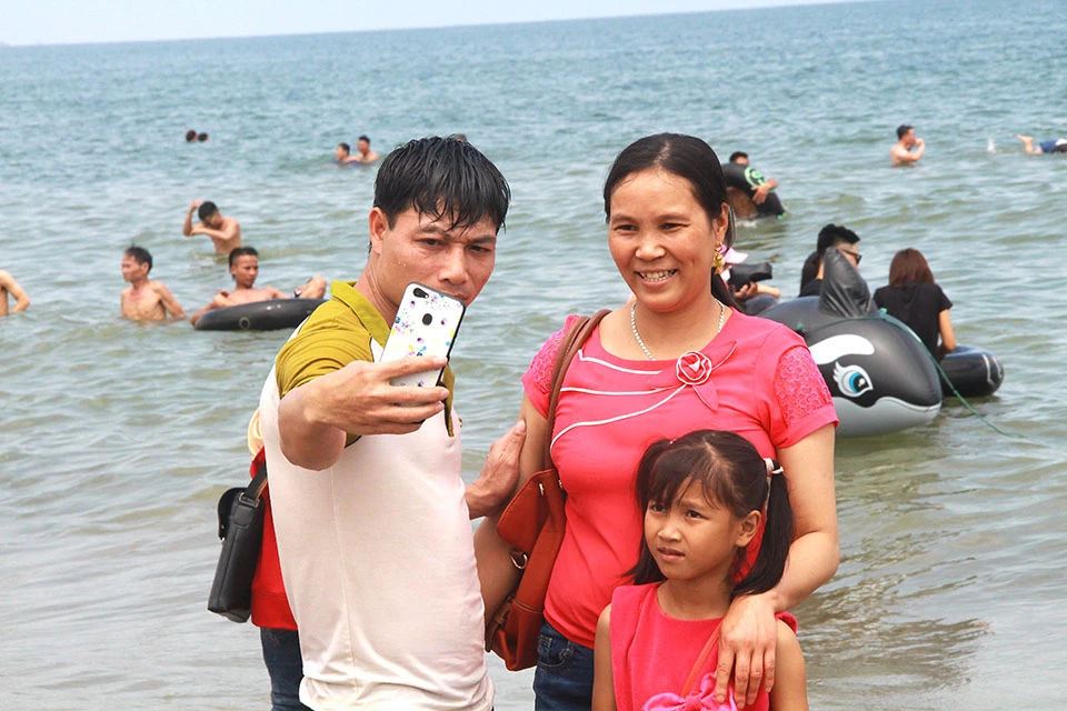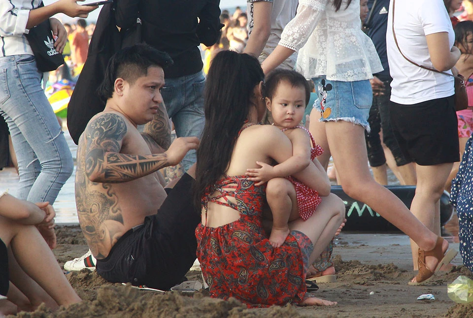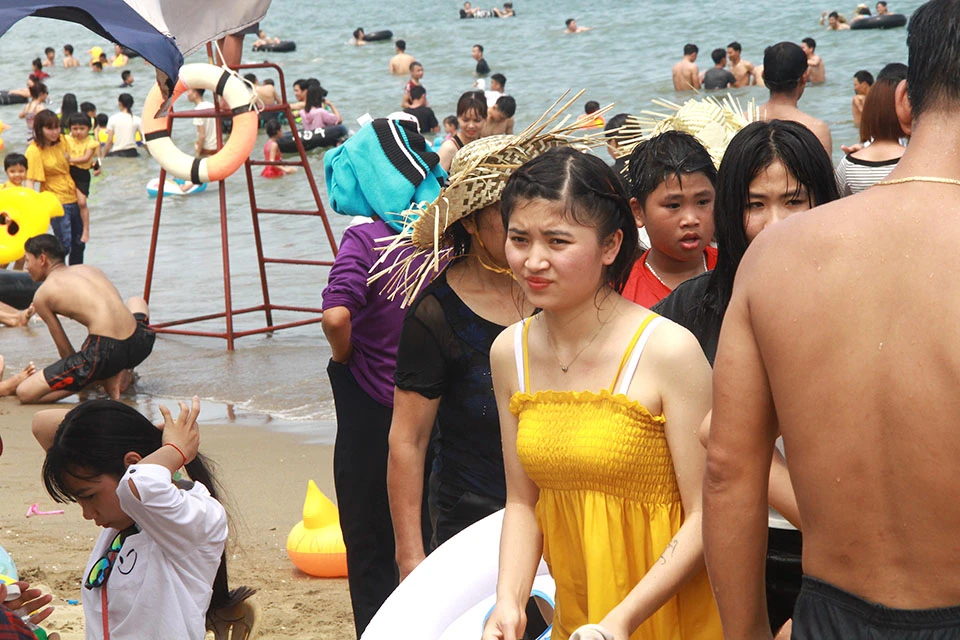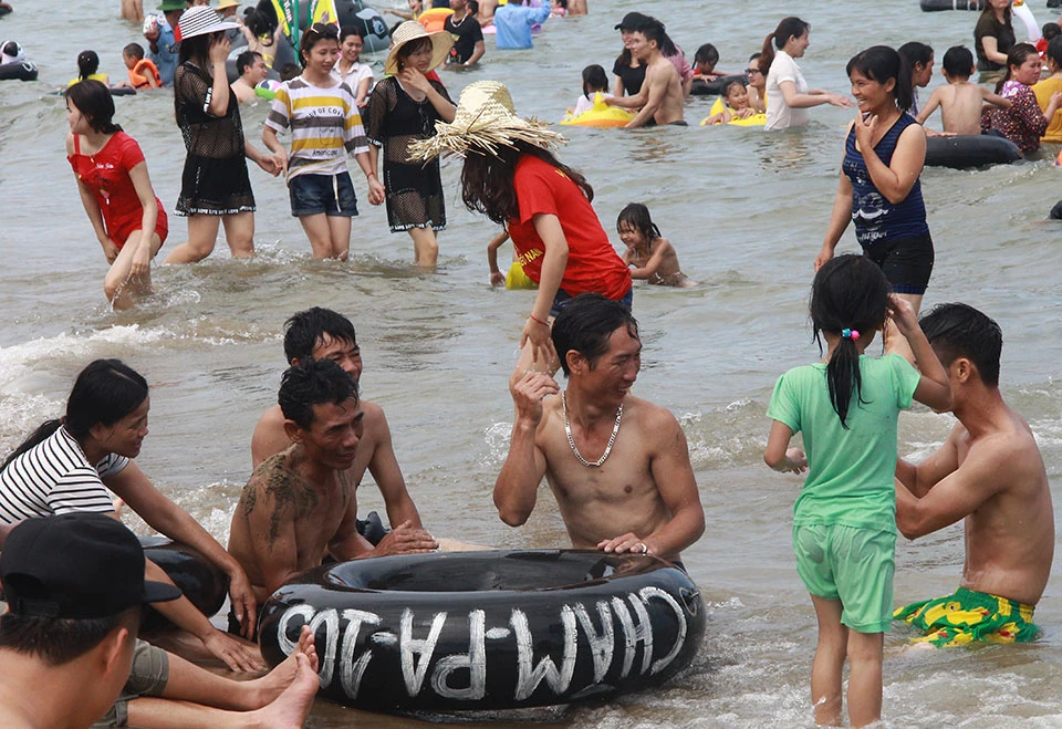 Khoảng 5 giờ chiều cùng ngày, lượng người xuống tắm biển vẫn đông hơn cả trảy hội.