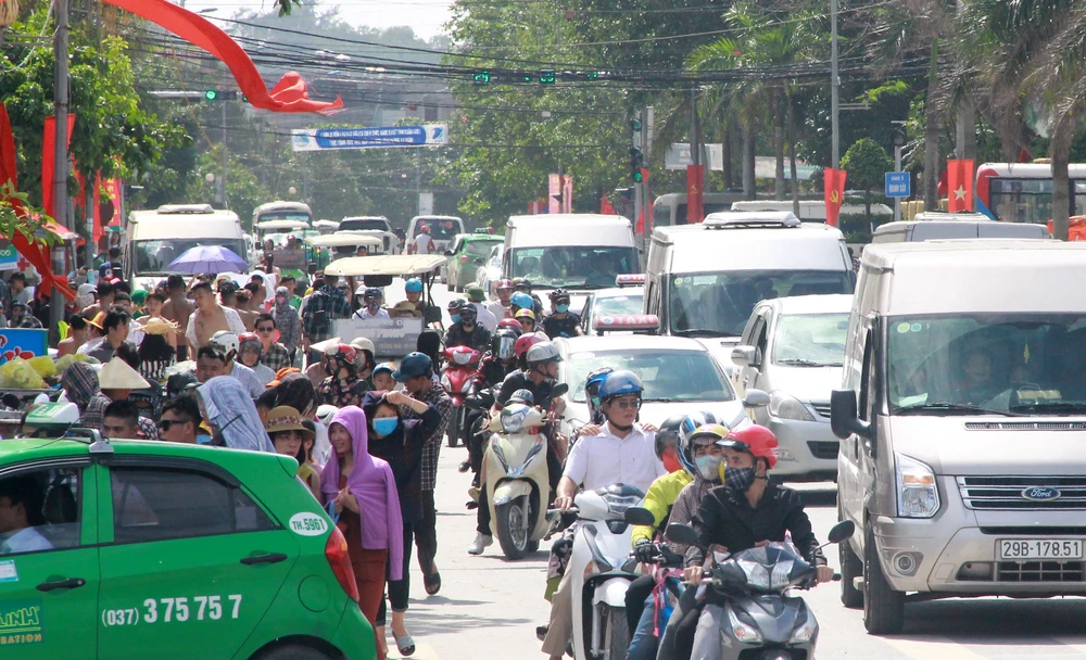 Chiều 30-4, biển Sầm Sơn luôn trong tình trạng nghẹt cứng, dòng người đổ về mỗi lúc một đông hơn.