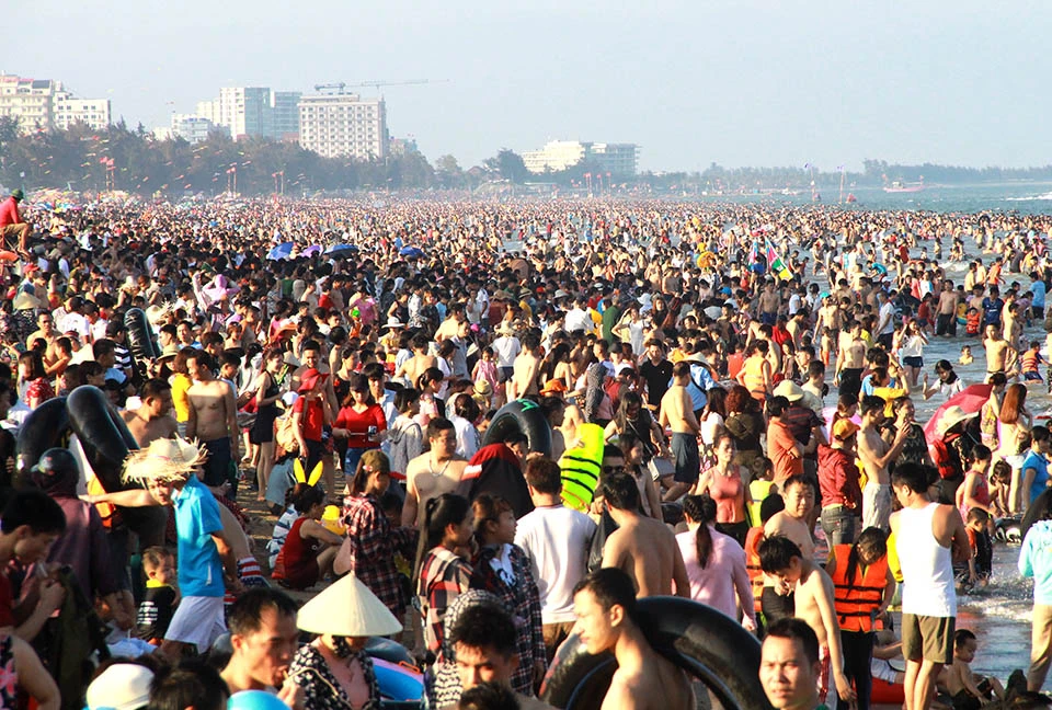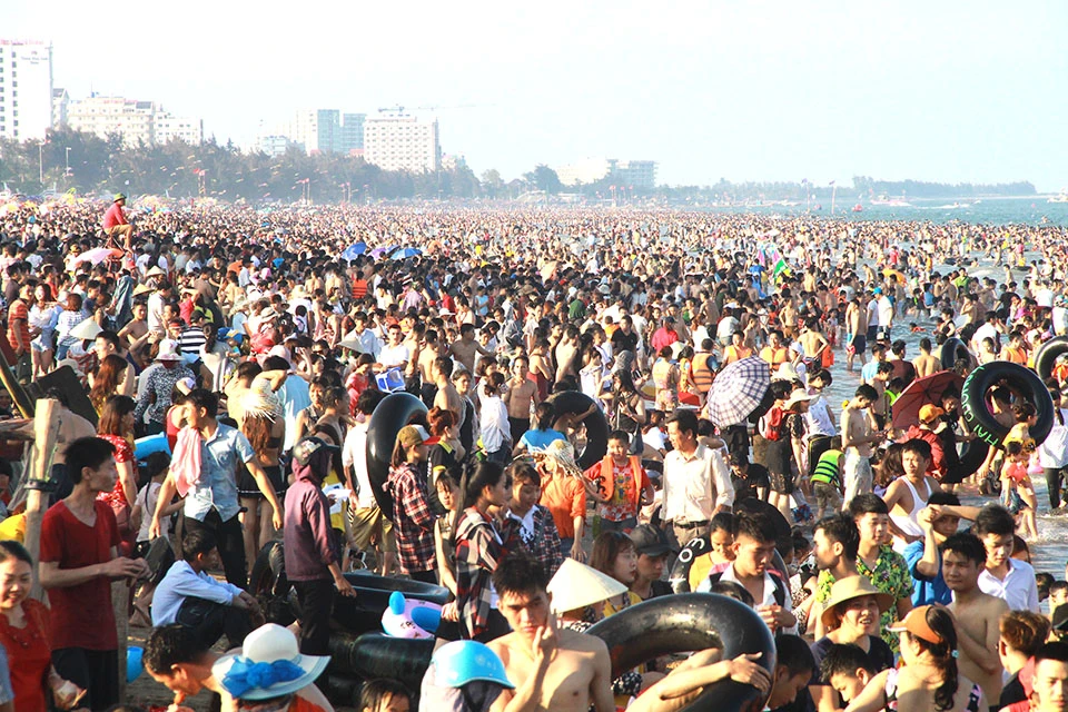 Biển người đông nghịt tại Sầm Sơn.