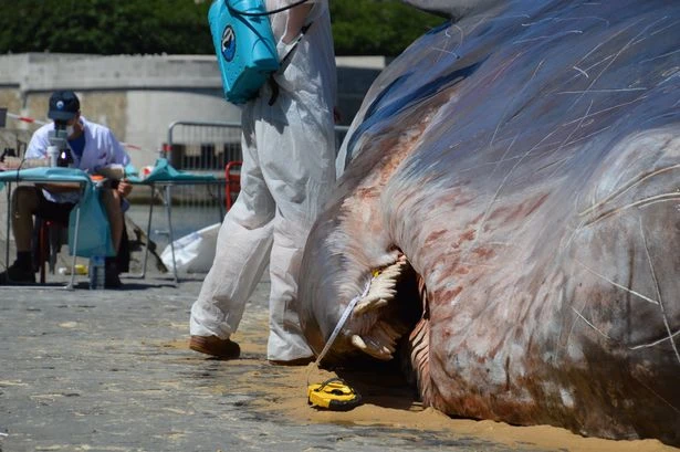 Thực ra đây là một tác phẩm nghệ thuật đường phố với độ tinh xảo tuyệt đối. Thêm vào đó, một vài diễn viên đóng giả các nhà khoa học pháp y, mặc áo quần bảo hộ thay nhau "nghiên cứu" con vật đáng thương càng khiến du khách tin rằng thứ mình đang thấy là cá voi thật.