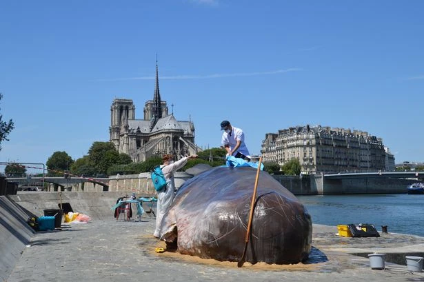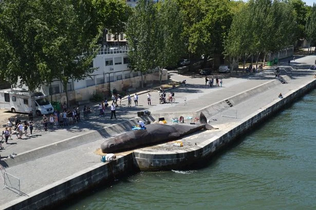 Chú cá voi này sẽ "mắc cạn" ở Paris cho đến hết Chủ nhật tuần này trước khi nó được dọn đi để tiếp tục "mắc cạn" ở một "bãi biển" châu Âu khác. Ảnh: NEWZULU