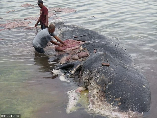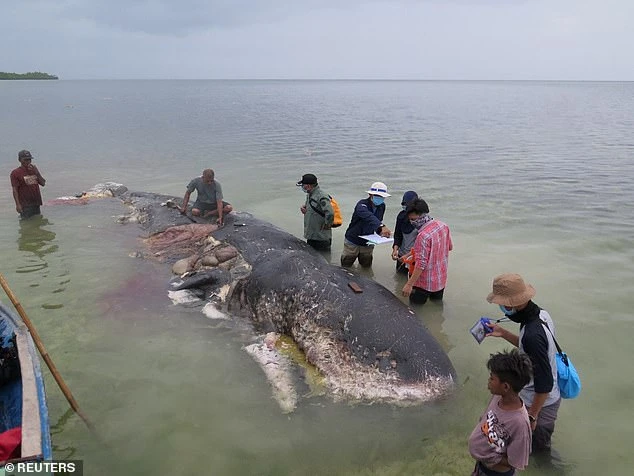 Con cá voi chết và dạt vào bờ biển Indonesia hôm 19-11. Ảnh: Reuters