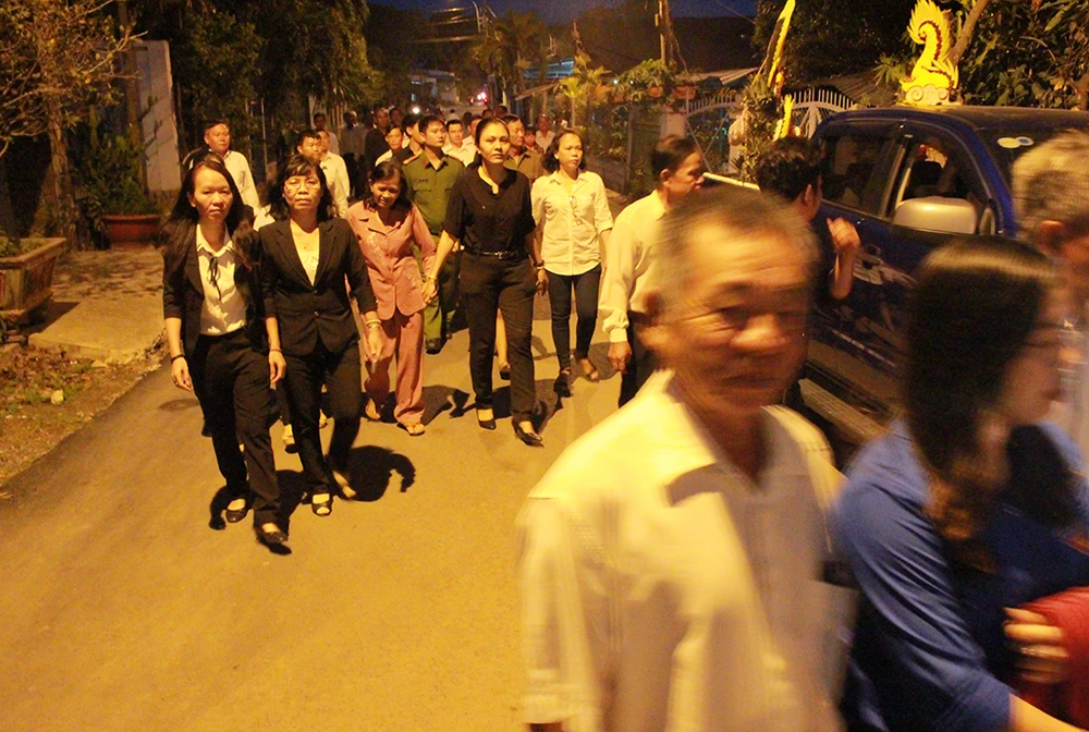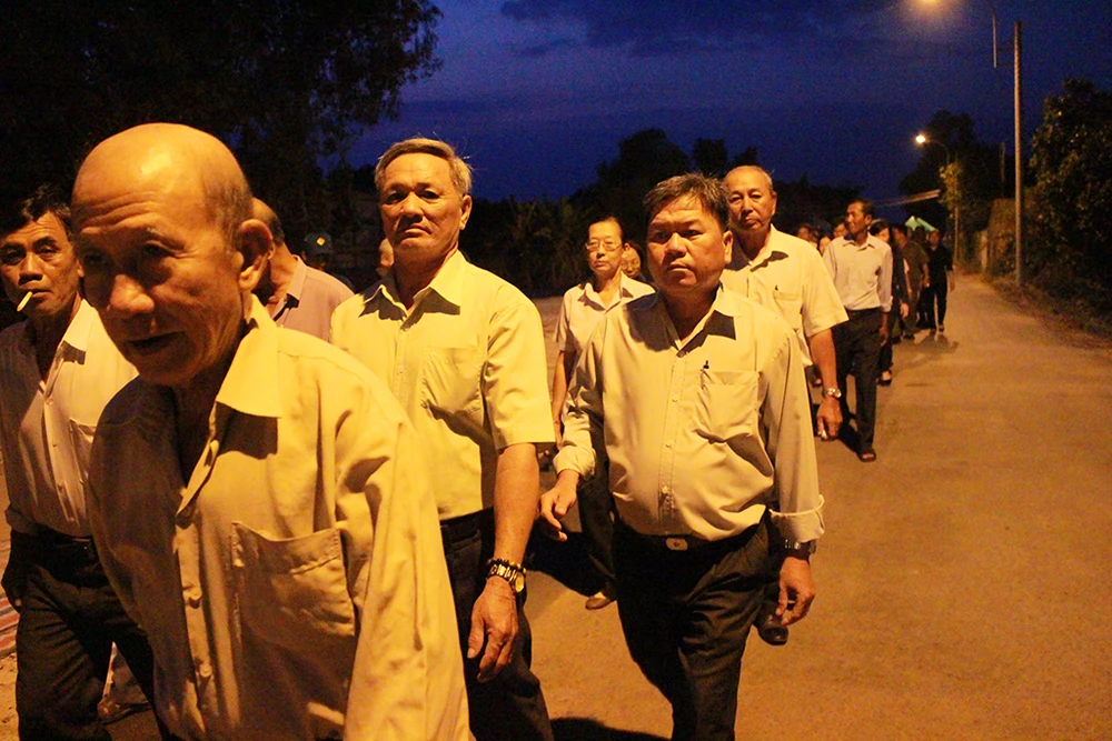 Trong đó có nhiều cán bộ xã, lực lượng công an, dân phòng, đoàn thanh niên, cán bộ về hưu và rất đông người dân ở các ấp nối đuôi nhau tiến vào nhà riêng của cố Thủ tướng. Có người còn dắt theo con, cháu nhỏ.