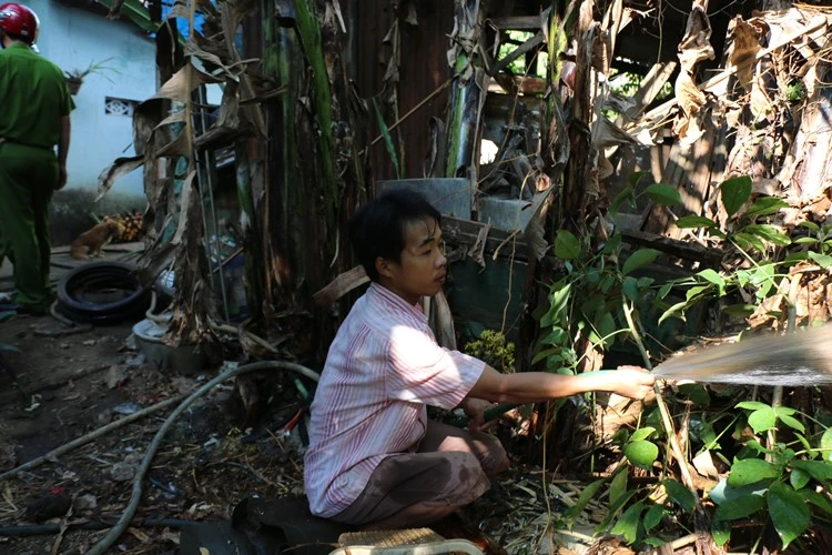 “Nghe tiếng nổ, tôi giật mình quay người lại thì thấy chú Hùng đang đứng cạnh đống rác trong tình cảnh quần áo rách rưới, lửa đang táp vào người. Tôi lật đật dập lửa trên người, cởi hết đồ rồi ẵm chú Hùng ra ngoài để mọi người đưa đi cấp cứu. Lúc ẵm chú ấy, tôi thấy khắp người chú bị bỏng rộp, lột cả da, tóc cháy hết” - anh Phi kể lại, giọng vẫn chưa hết bàng hoàng.
