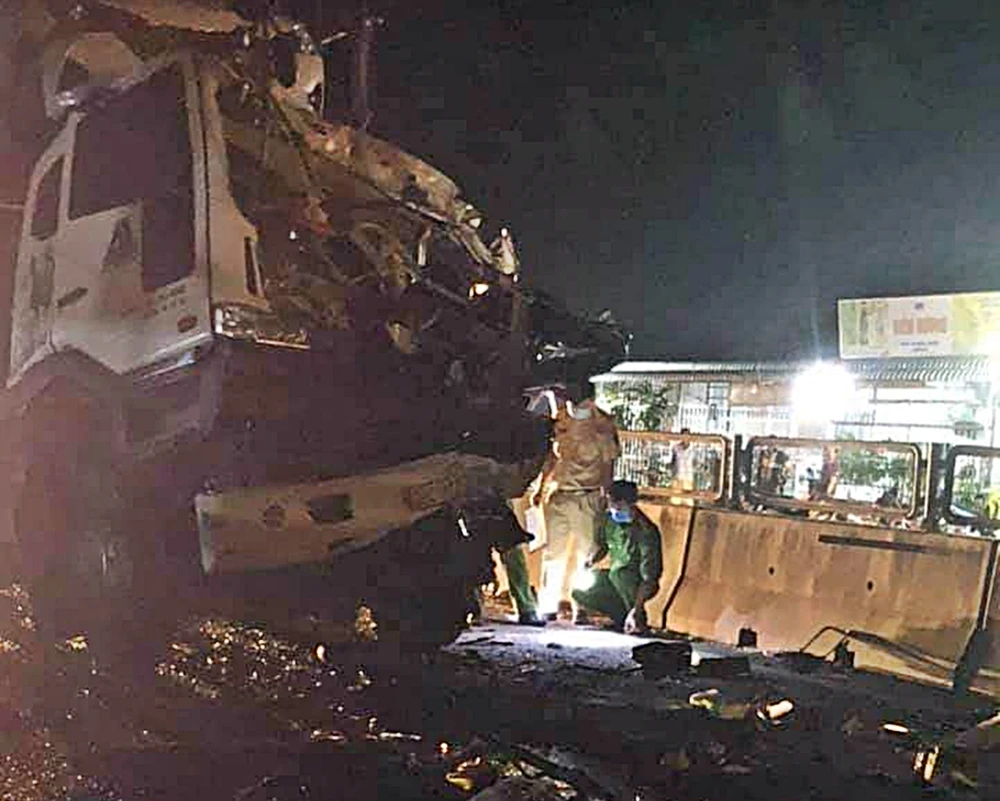 Khi đến đoạn đường trên đã tông vào đuôi xe ô tô đầu kéo 79C-11064 kéo do anh Phạm Tấn (35 tuổi, ngụ xã Suối Tiên, huyện Diên Khánh, tỉnh Khánh Hoà) điều khiển, đang dừng trên làn bên trái, sát dải phân cách.