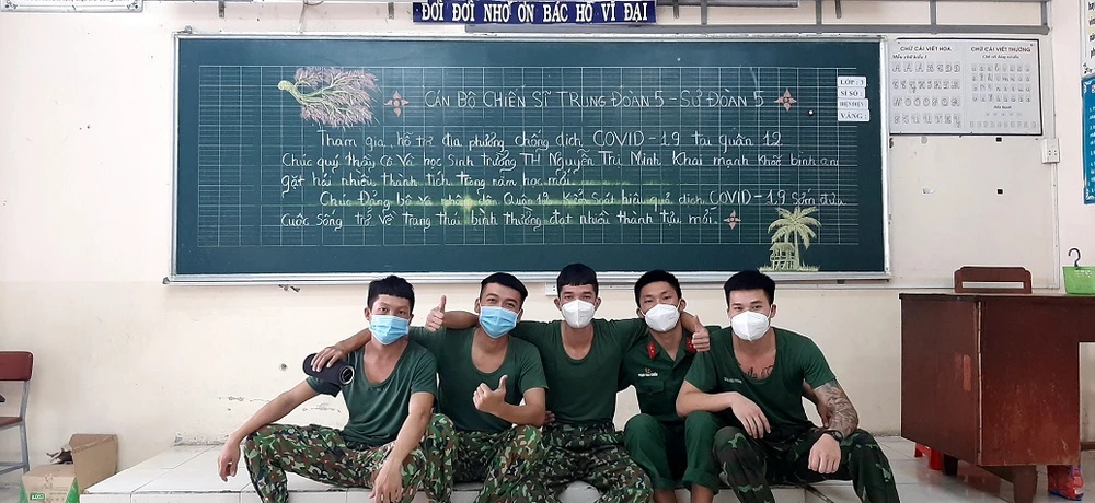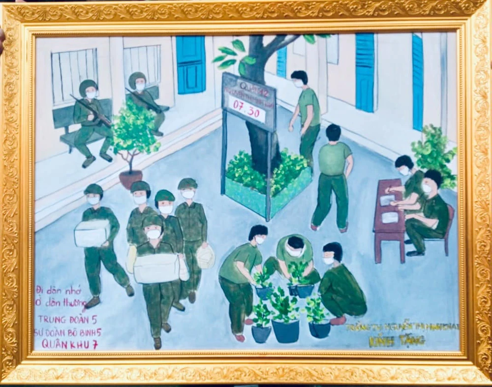 Cùng địa phương phòng, chống dịch đối với anh Nguyễn Văn Thìn, Chính trị viên Đại đội 16, Trung đoàn 5 như được về với gia đình, được chia sẻ khó khăn của mọi người. “Bà con dễ thương như ba mẹ của mình vậy. Nhiều lần đi vận chuyển lương thực người dân thương bộ đội còn mua thức ăn đồ uống cho bộ đội nữa” - Anh Thìn chia sẻ.