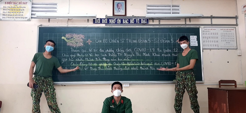 Các anh bộ đội gửi những lời chúc cảm động đến nhà trường - Ảnh: NVCC