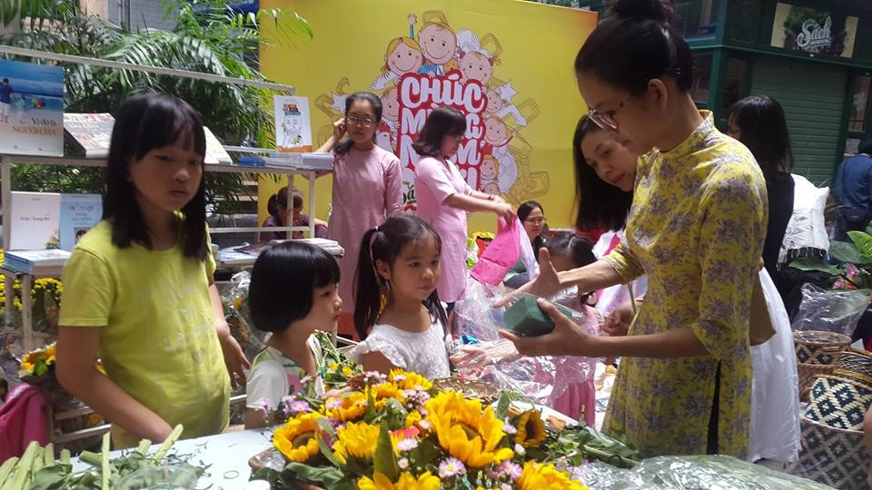 Sáng nay, 6-2, các chị trong Hội quán đã tổ chức “hội hoa” tại đường sách Nguyễn Văn Bình. Có bà mẹ đã cùng 3 con chuẩn bị việc bán hoa từ ngày hôm trước, lên kế hoạch đi xe buýt đến từ sớm và đặc biệt là rao hoa qua FB. Trong số 500 hoa Hướng Dương mà Hội quán bán được hôm nay có gần 200 bông được chị rao từ trước, hôm nay các con bó, đặt grab, viết phiếu, giao hàng. Có bà mẹ chạy từ Thủ Đức lên mua 30 bông. Có chị mua 20 bông mang về cắm vàng rực khắp nhà rồi chụp hình khoe trên FB…
