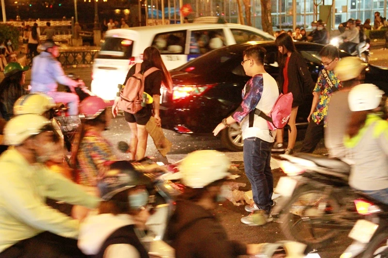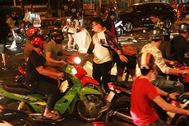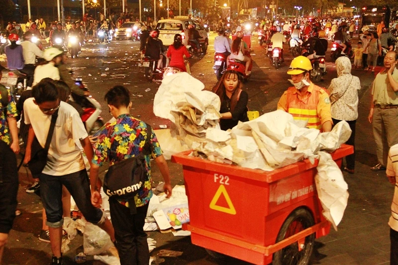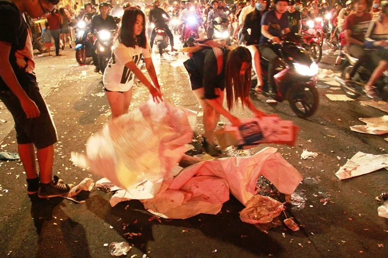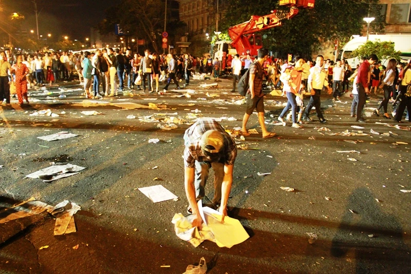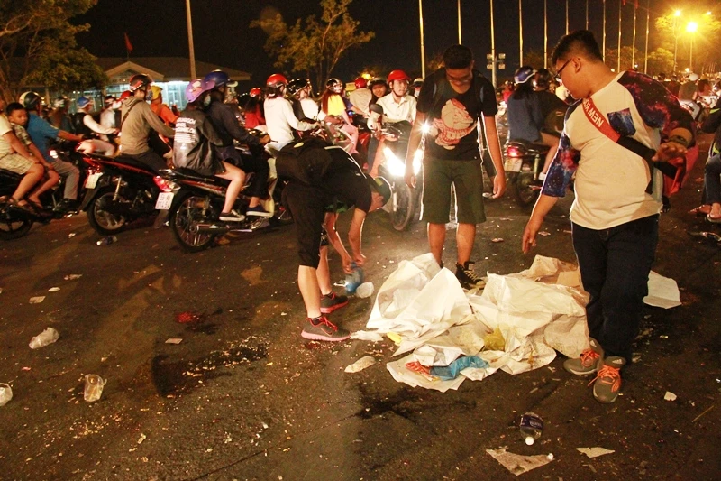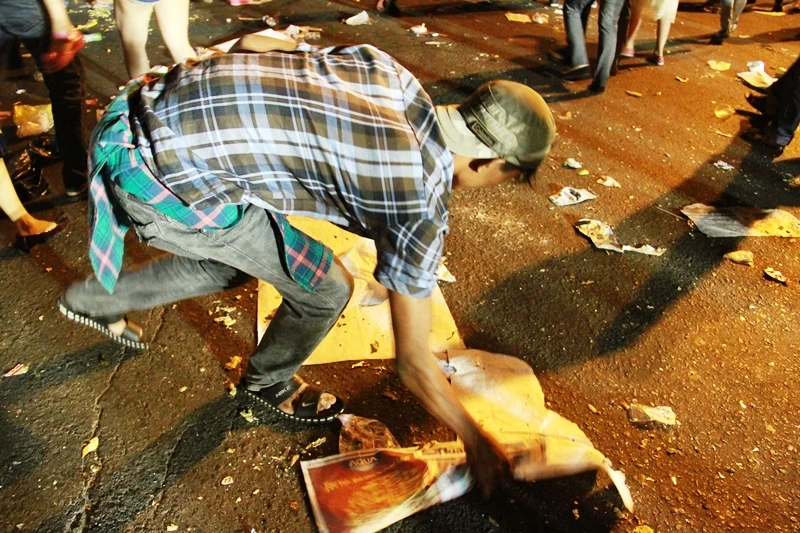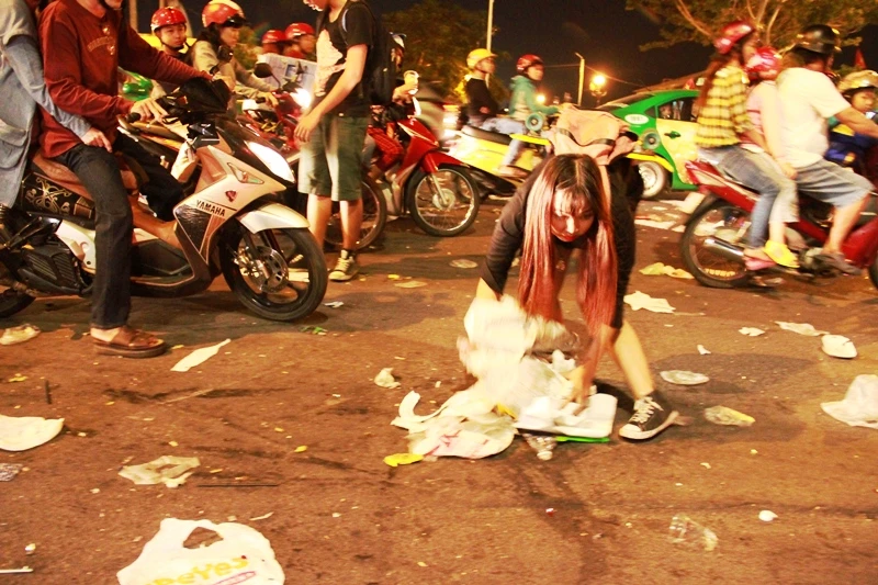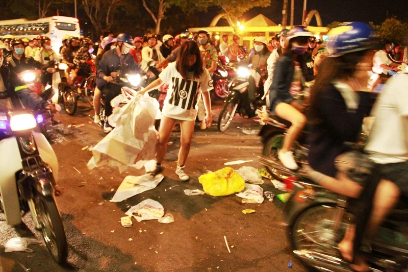 Trong lúc phần đa mọi người đều vô tâm, nhiều người giẫm lên rác thải để mau chóng trở về nhà.