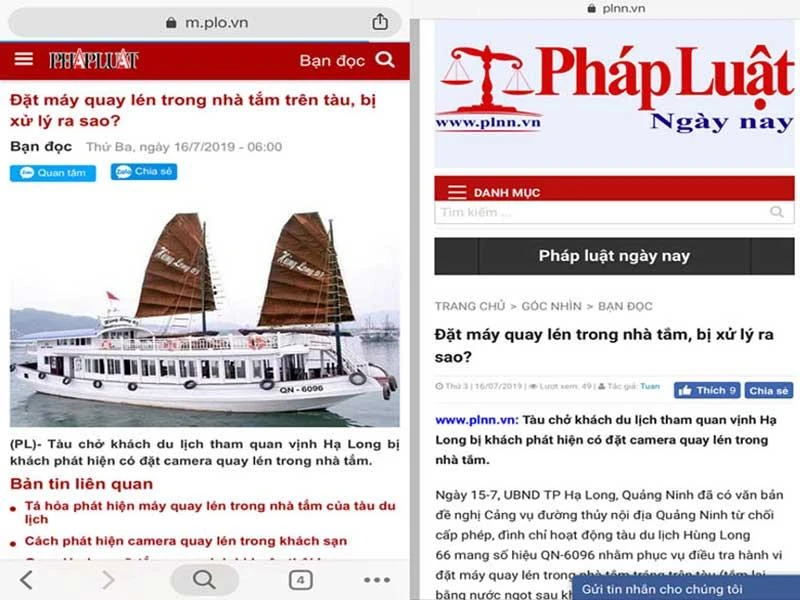 Trang thông tin điện tử Pháp Luật Ngày Nay sao chép bài viết của báo Pháp Luật TP.HCM trong cùng một ngày mà không được sự cho phép. Ảnh: PV