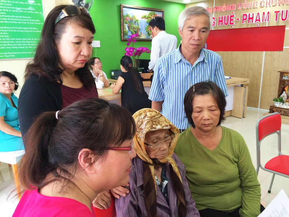 Gia đình cụ Lê Thị Háo đến VPCC làm thủ tục. Ảnh: TẤN LỘC