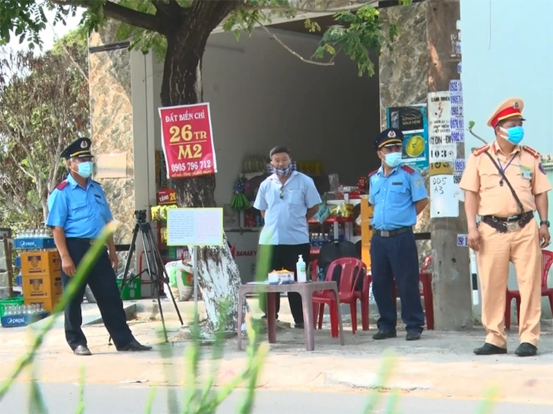Lực lượng chức năng tỉnh Quảng Nam lập chốt kiểm tra tại các lối ra vào địa bàn tỉnh. Ảnh: THANH NHẬT