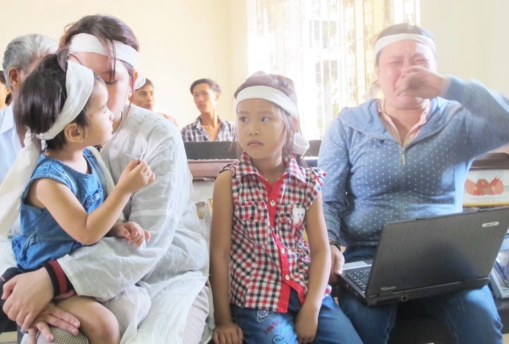 Người nhà của anh Ngô Thanh Kiều, người bị 5 công an dùng nhục đánh chết. Ảnh: Tấn Lộc