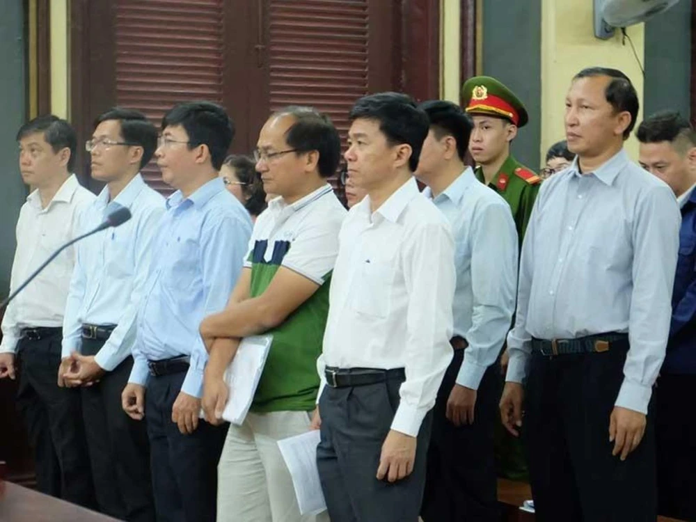 Các bị cáo tại phiên tòa. Ảnh: HOÀNG YẾN