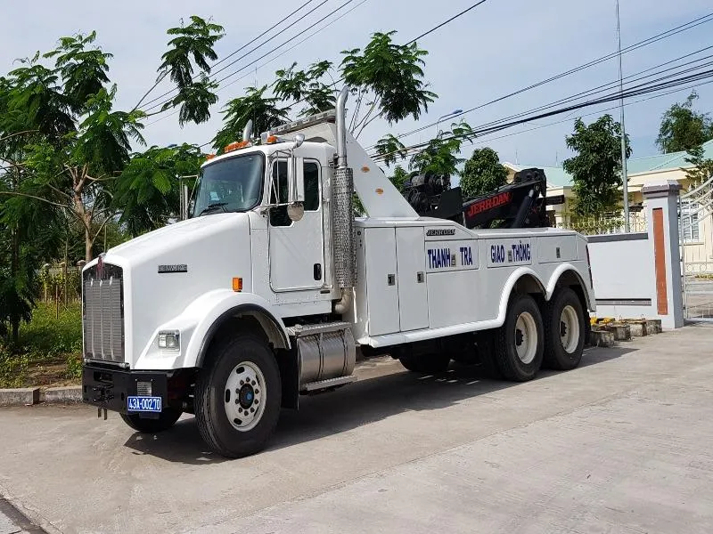 Xe kéo hạng nặng có dòng chữ "Thanh tra giao thông" đậu trước cổng nhà điều hành BOT Sóc Trăng.
