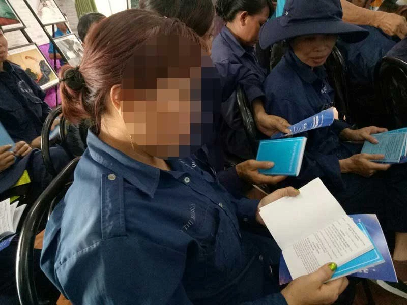 Các công nhân đang xem thông tin hướng dẫn làm thủ tục nhận bảo hiểm thất nghiệp. Ảnh: TRÚC PHƯƠNG
