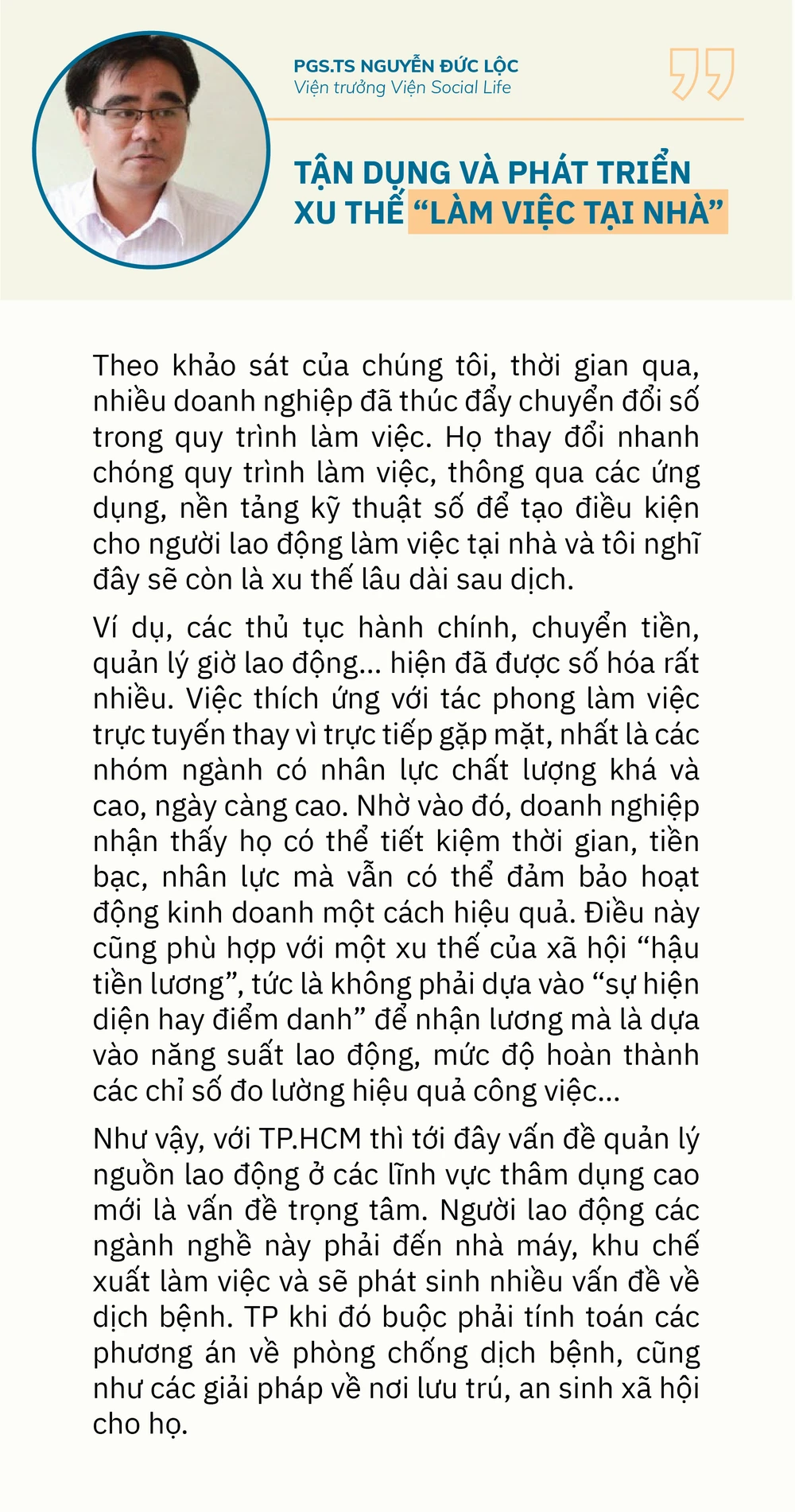 . Phóng viên: Nhìn toàn cảnh bức tranh đời sống - kinh tế ở TP.HCM trong giai đoạn hồi sức sau đại dịch,đâu là các yêu cầu cấp thiết nhất hiện nay, thưa ông?